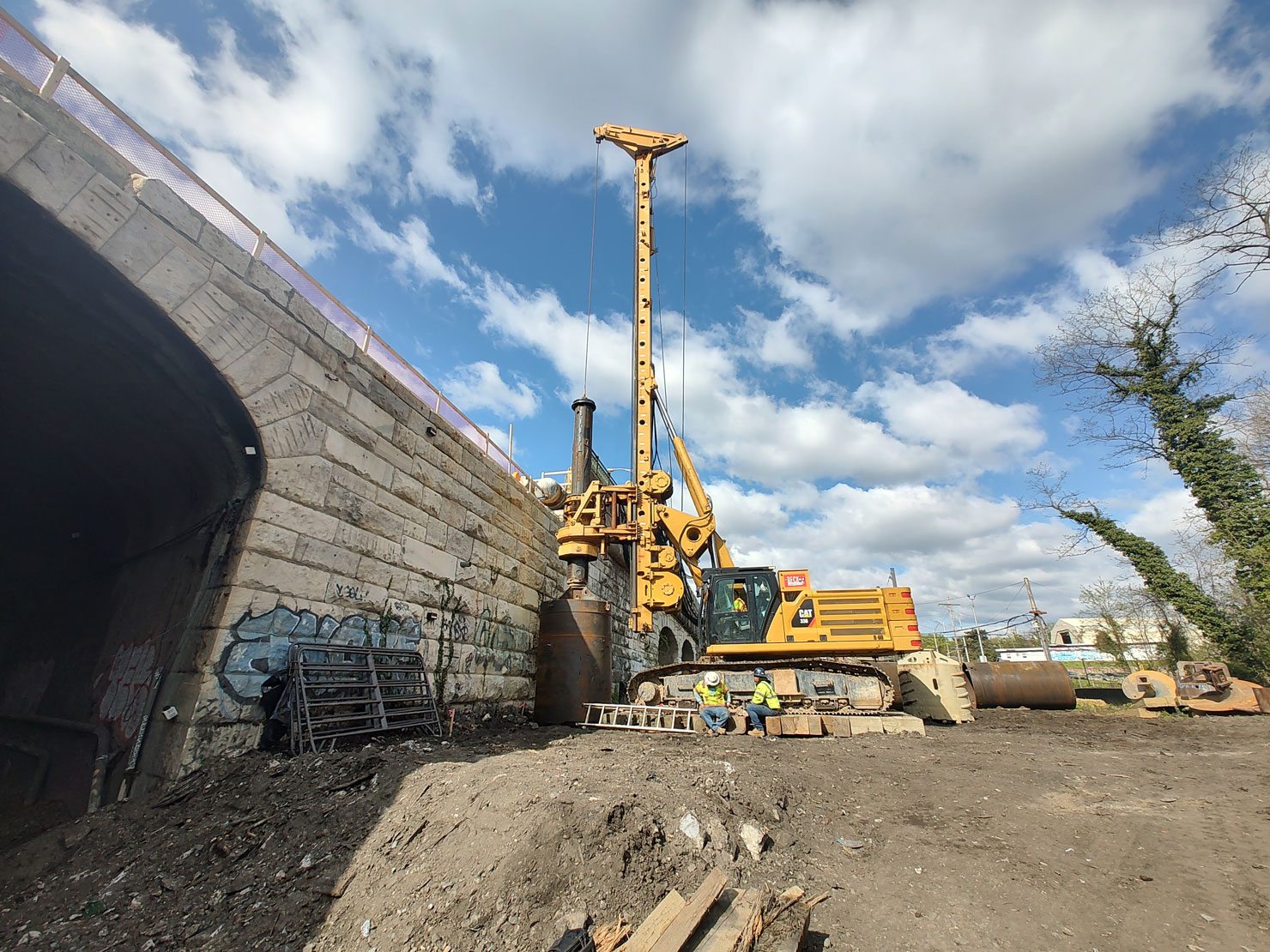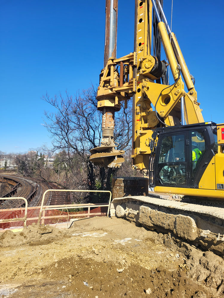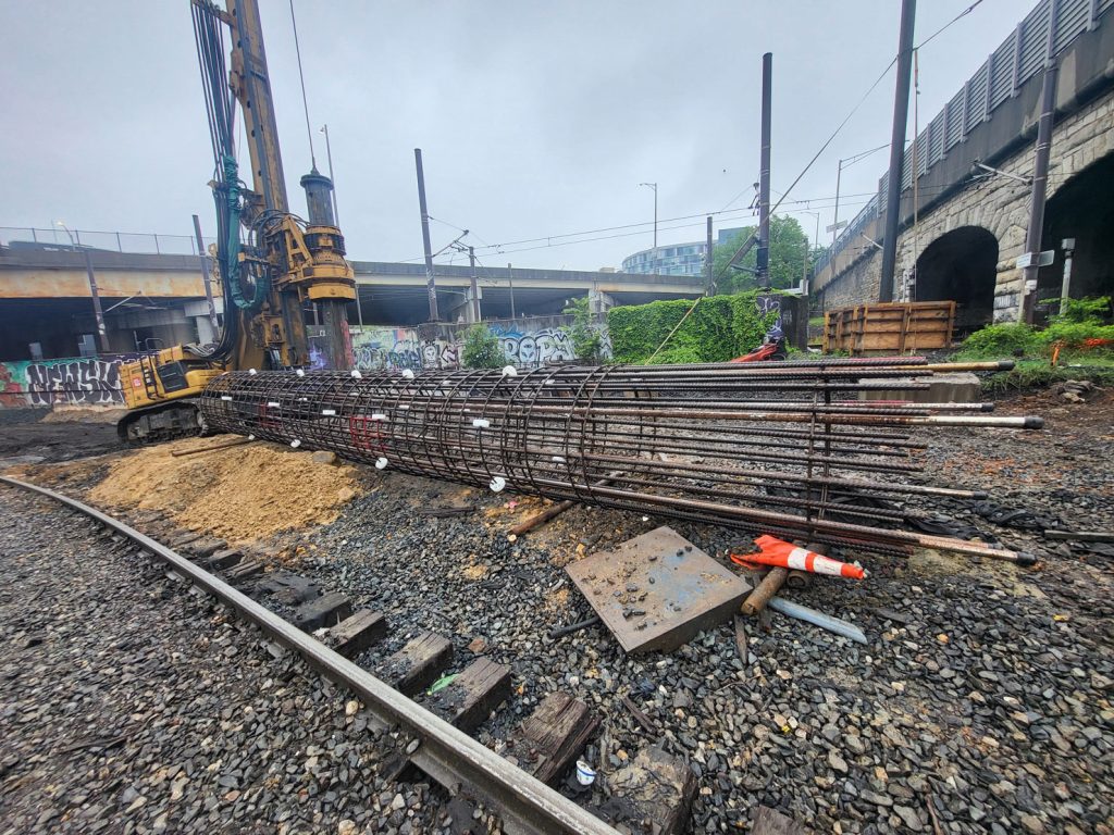In parallel with integrity testing, FTG was responsible for the design, installation, and monitoring of a comprehensive geotechnical instrumentation program, led by Geotechnical Engineer Nick Youngs, P.E. Instrumentation was deployed to monitor the structural integrity of both the existing and new bridge elements and to provide early warning of potential ground movement or structural response that could impact active rail operations beneath the bridge.